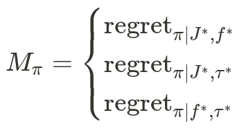 ^ For example, if we are training a robot arm to pick up objects, with a return of 1 meaning a successful pickup and 0 meaning failure, we know that the optimal policy’s expected return should be (very close to) 1, so we can actually compute the regret during training. Similarly, we know for many Atari games what a perfect score is (such as Pong, where a score of 21 is perfect) or can define a score that is practically perfect (Montezuma’s Revenge has a fixed set of unique levels which repeat in order and a total score for clearing all unique levels).